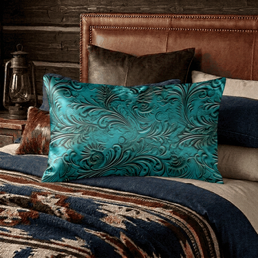 Baha Ranch Tooled Turquoise Leather Satin Pillowcase Made in America
