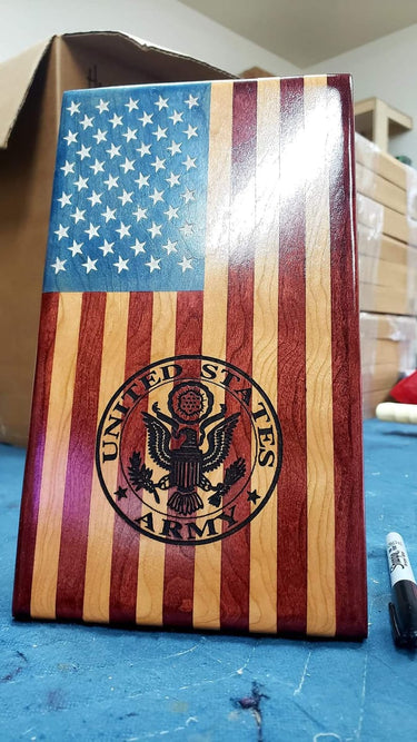 Our 6.25" x 11" hand-made and laser-engraved flags are the perfect way to honor an individual or department with a unique and meaningful gift. These high-quality flags are veteran-made and feature your original designs, logos, or text, making them truly one-of-a-kind. Use them as desktop flags or plaques to display your pride and appreciation in a personal and stylish way. Whether you're looking to recognize a colleague, friend, or family member, or simply want to show your support for a particular cause or organization, our laser-engraved flags are a thoughtful and meaningful choice. So if you want to create a special and enduring tribute, consider one of our hand-made and laser-engraved flags.