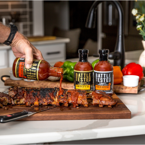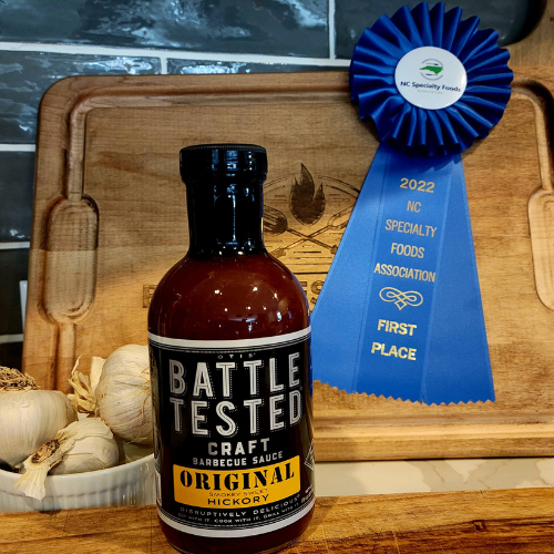 And, our BBQ Sauce is so good, it was North Carolina Specialty Foods' "Barbecue Sauce Of The Year." Battle Tested is a unique blend of select spices and flavors that will remind you of what True American Barbecue Sauce is all about. No high fructose corn syrup or artificial preservatives… just all-natural, real ingredients you can read, pronounce, and taste. Sauce so thick and good it will have your taste buds dancing like skyrockets on the 4th of July!