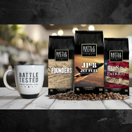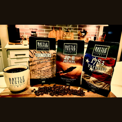 Veteran Owned Battle Tested Gourmet Roasted Coffee is here! Founders Roast (Med-Dark Roast), JP-8 Jet Fuel (Dark Roast), and 1783 Patriot Roast (Med-Dark Roast with a hint of Whiskey). Coffee so good, it should be added to the "Bill of Rights!"