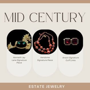 - Estate jewelry from Art Deco, Retro, and Mid-Century, including Bakelite