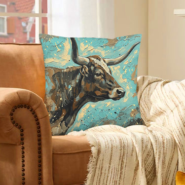 Home Baha Ranch Painted Longhorn Velvety Soft Pillow Case Made in America