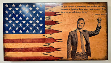 Our Faith and Freedom Flag, 19"×34"x2" solid cherry with hanging hardware.