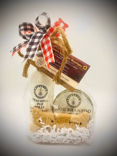 This Fur Baby Gift includes our Lavender Peaceful Pup Spray, Lavender Lemon Rosemary Dog Shampoo & a Milk Bone sweet treat! 🐶
