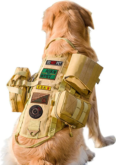 The soft Velcro on the back allows for easy attachment of patches, while the MOLLE straps on the sides offer even more customization options with additional accessories. The harness comes with three bags of varying sizes, which can be attached to the MOLLE straps, providing ample storage for treats, toys, or training supplies.