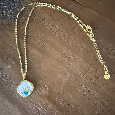 - 1 waterproof turquoise evil eye necklace 16" with a 2" extender